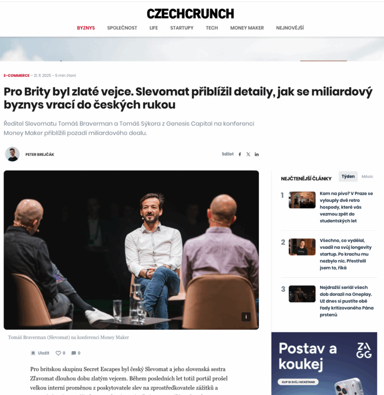 - CC: Velký přesun v českém online byznysu. Tomáš Braverman po konci v Heurece povede Slevomat